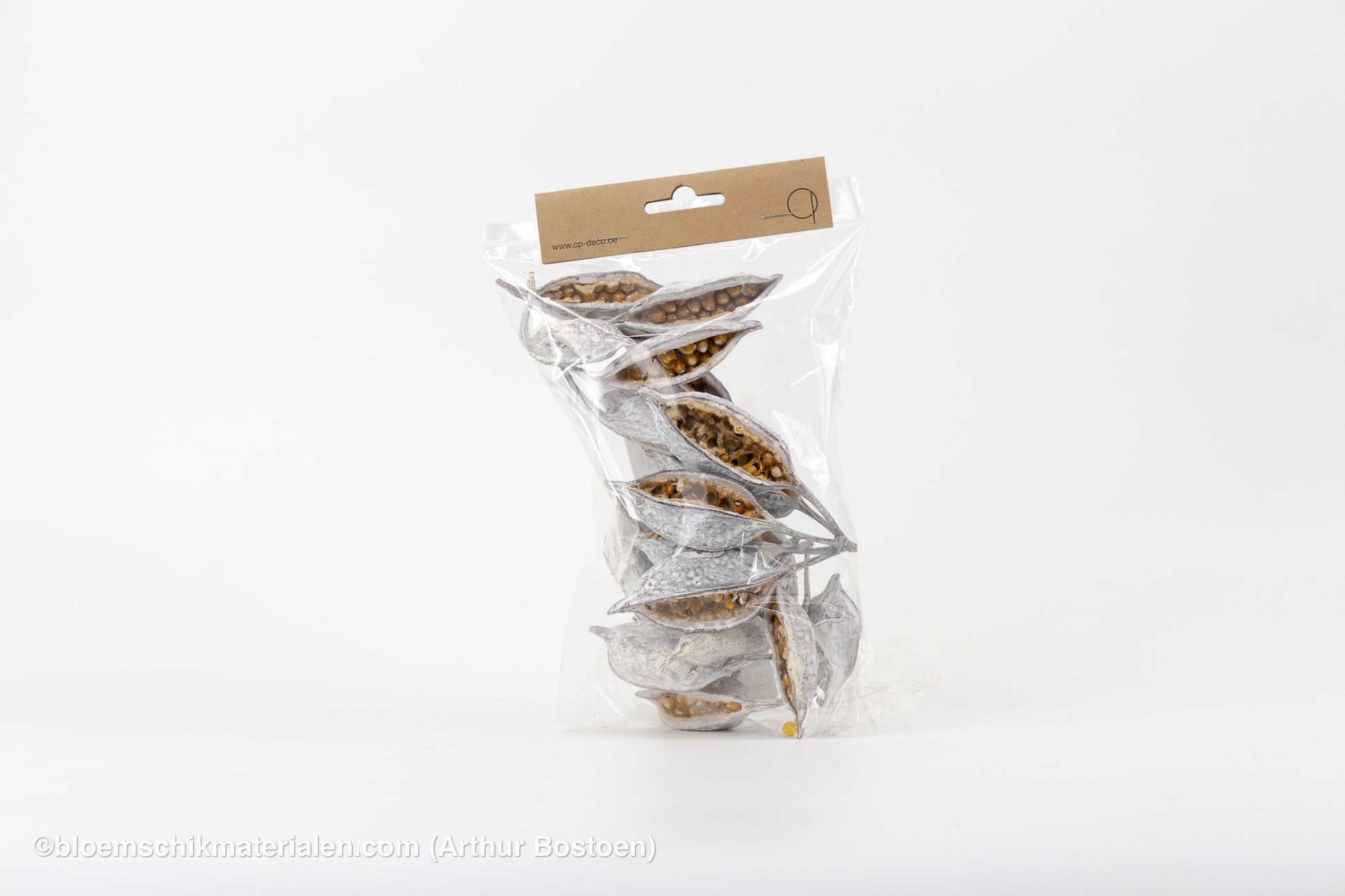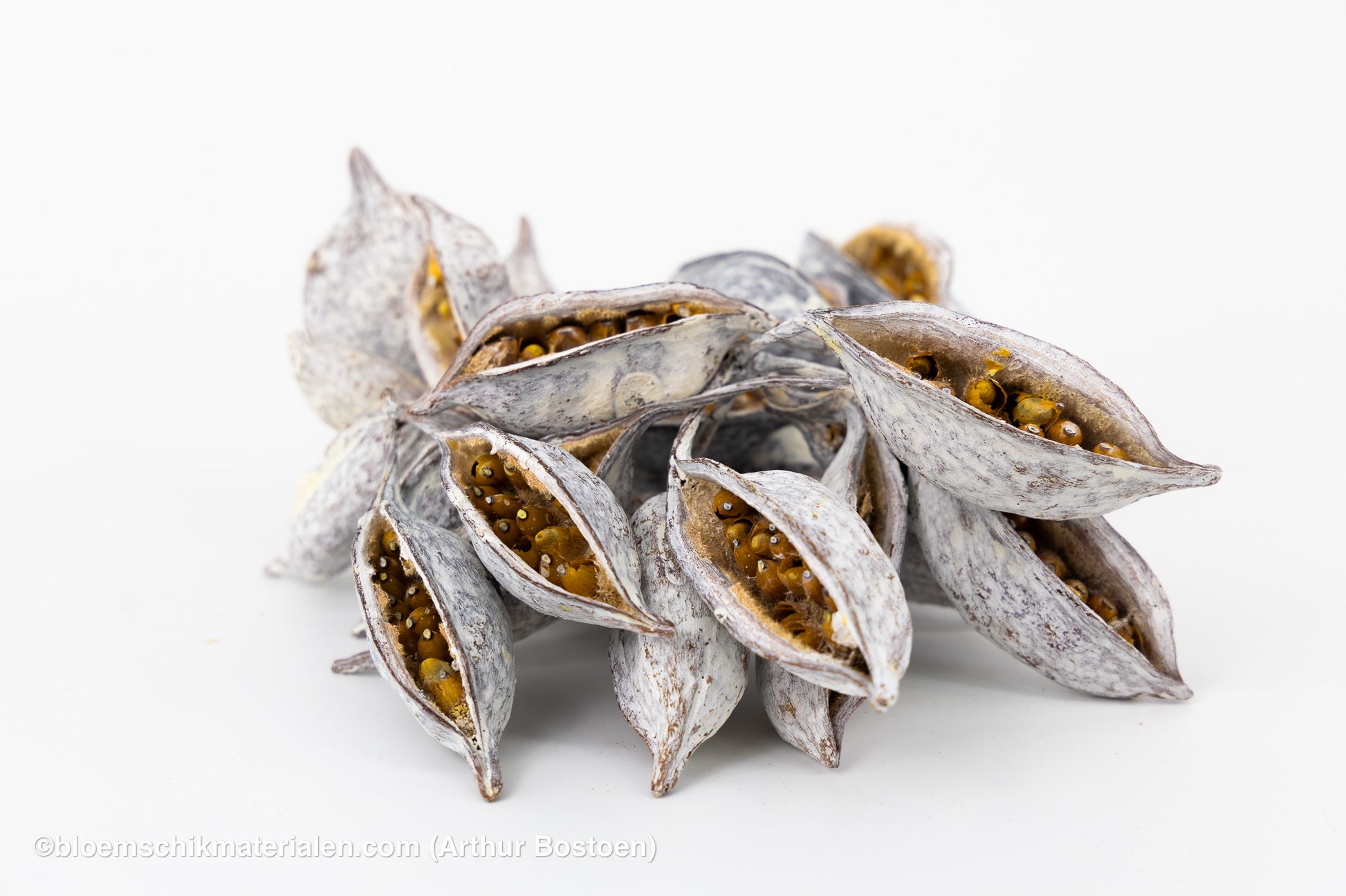 De Brachychiton white wash is een prachtig, subtiel gewassen zaadpeul van de Brachychiton-boom, ook wel bekend als de kurrajong of bottletree. Deze zaadpeulen zijn perfect voor het toevoegen van verfijnde texturen en een lichte, rustieke uitstraling aan bloemstukken en decoraties. De Brachychiton is oorspronkelijk afkomstig uit Australië en Nieuw-Guinea, en de zaadpeulen hebben een unieke uitstraling die goed past in een minimalistisch of boho-stijlarrangement. De witte afwerking geeft een gedempte uitstraling voor een meer moderne uitstraling of voor bruidswerk etc.