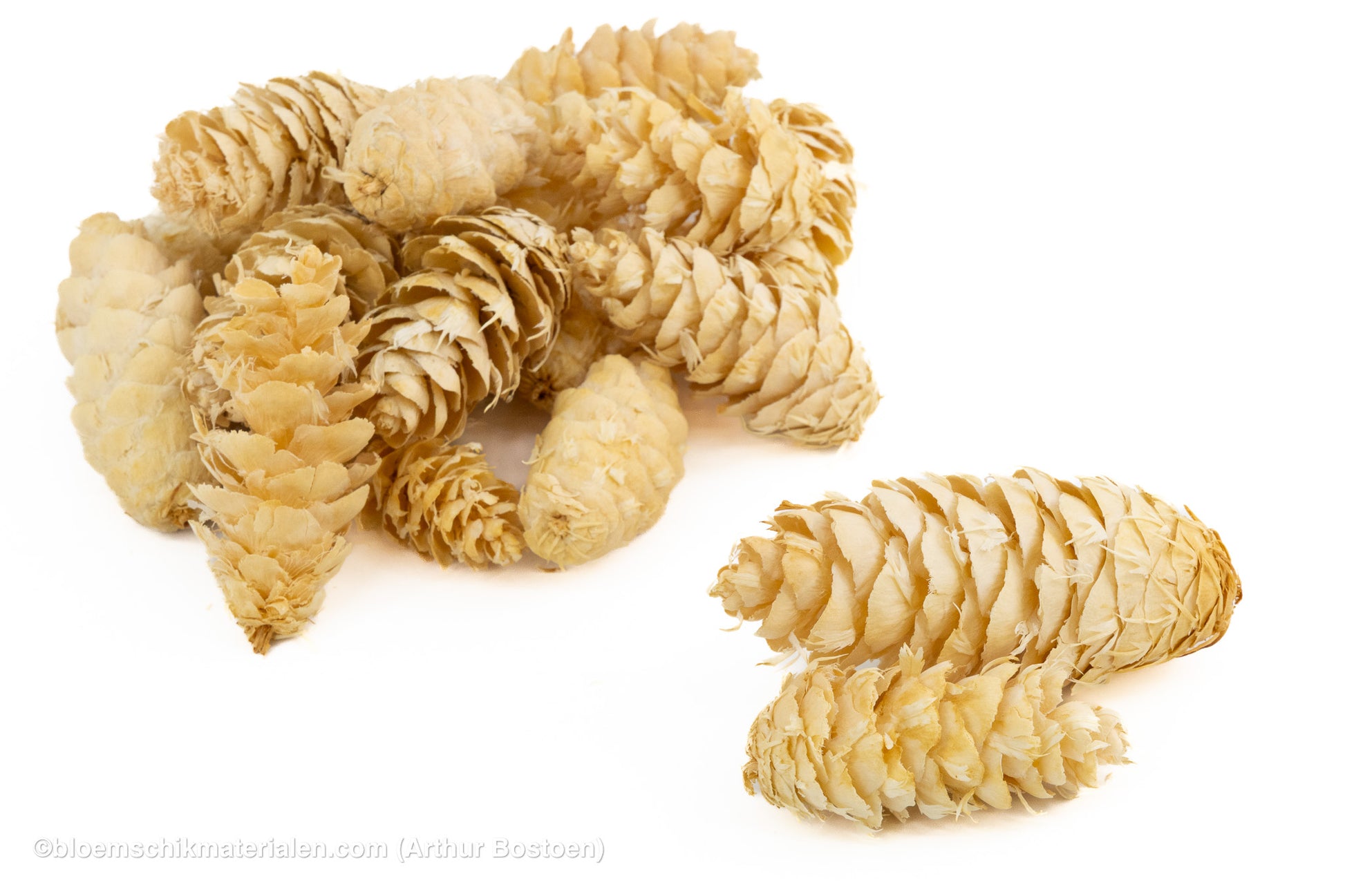 Deze Douglas-dennenappels zijn licht gebleekt, wat hen een frisse en zachte uitstraling geeft. Ze zijn ideaal voor winterse decoraties, kransen en bloemstukken waarin een lichtere toets gewenst is.