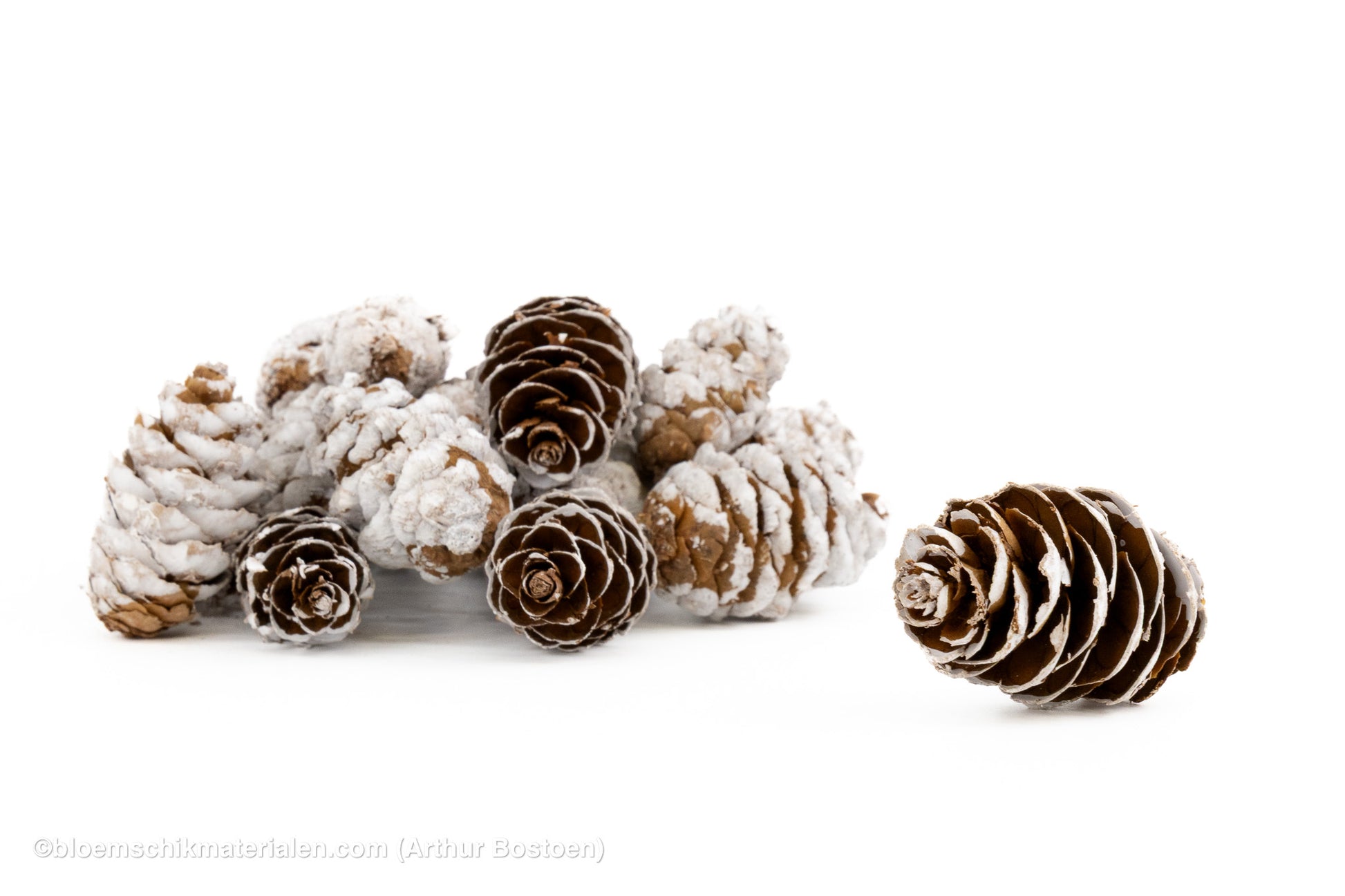 Deze Douglas-dennenappels zijn voorzien van een white wash afwerking, wat ze een feestelijke, winterse uitstraling geeft. Perfect voor kerststukken, adventskransen of tafeldecoraties met een frisse, lichte toets.