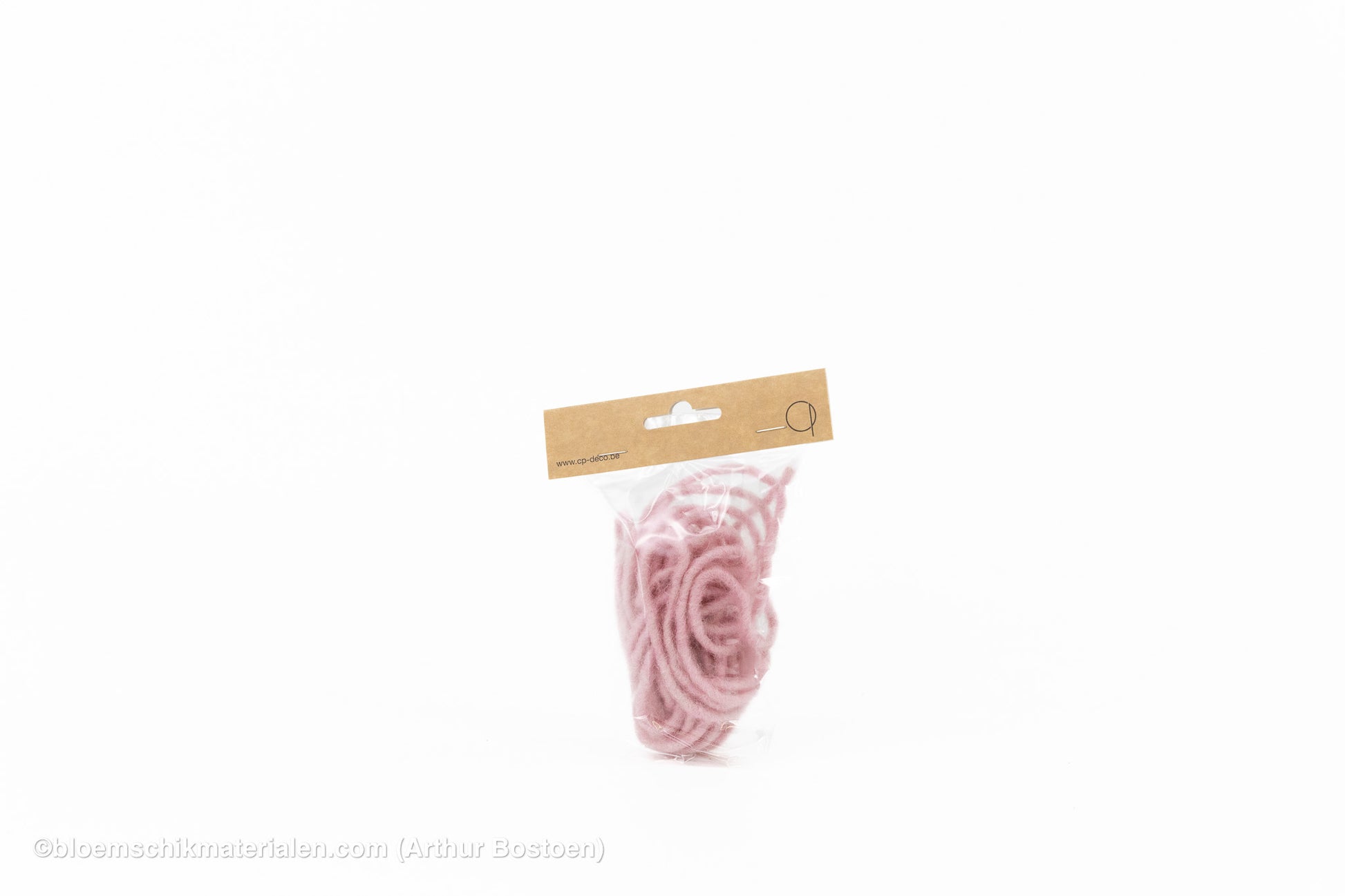 Deze dunne roze woldraad is vrij dik in uitstraling (de dunne variant naast onze nog dikkere draad) maar soepel in gebruik. Zachtroze voor romantische en tedere sferen—ideaal voor bruiloften, geboorte-arrangementen en lentecomposities. Dun en handig voor versieren, inpakken, weven en haken.