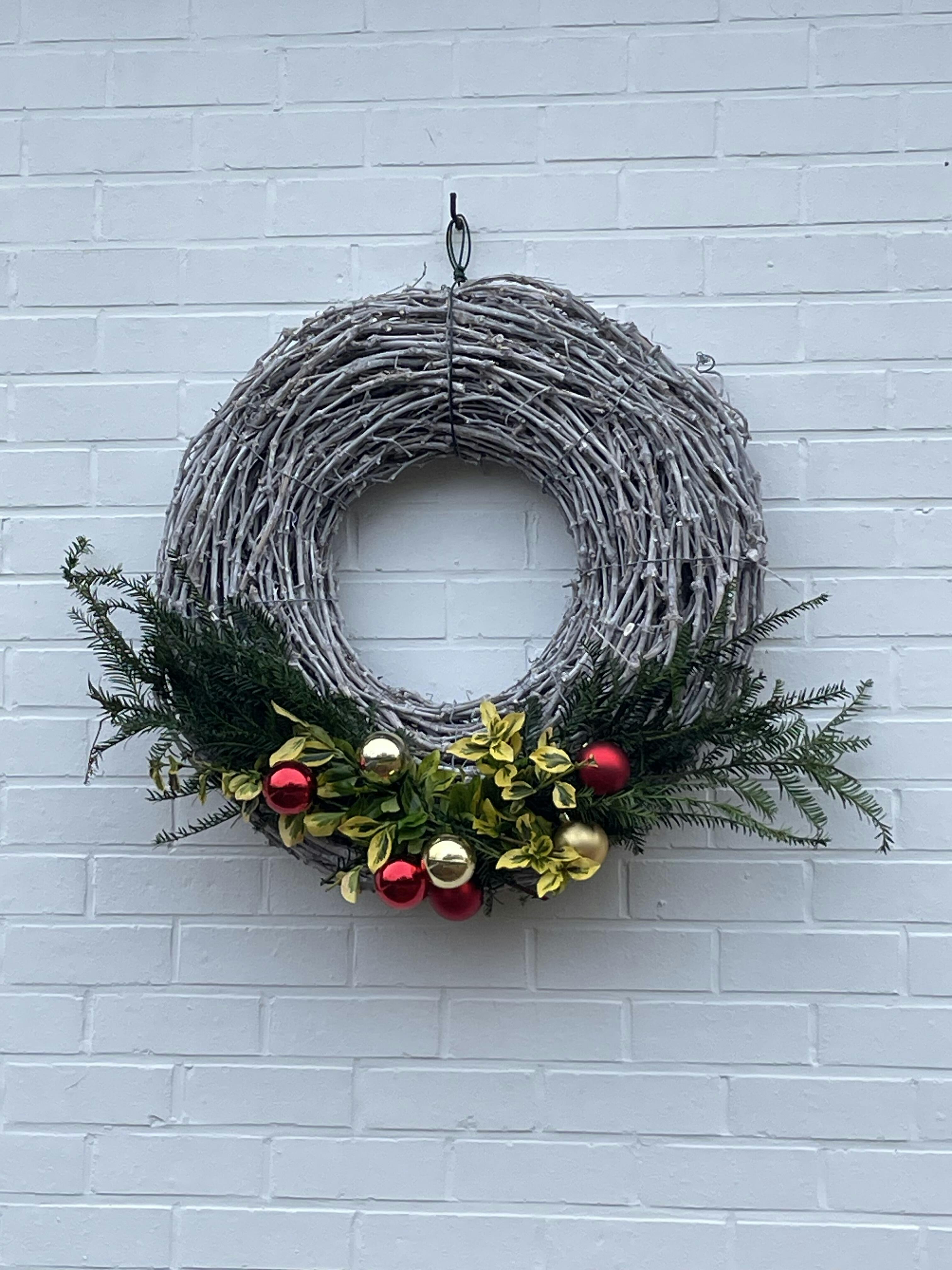 Rond kerst versierd met wat groen en kerstversiering, was een echte blikvanger. We zijn van plan de krans het hele jaar door te laten hangen.