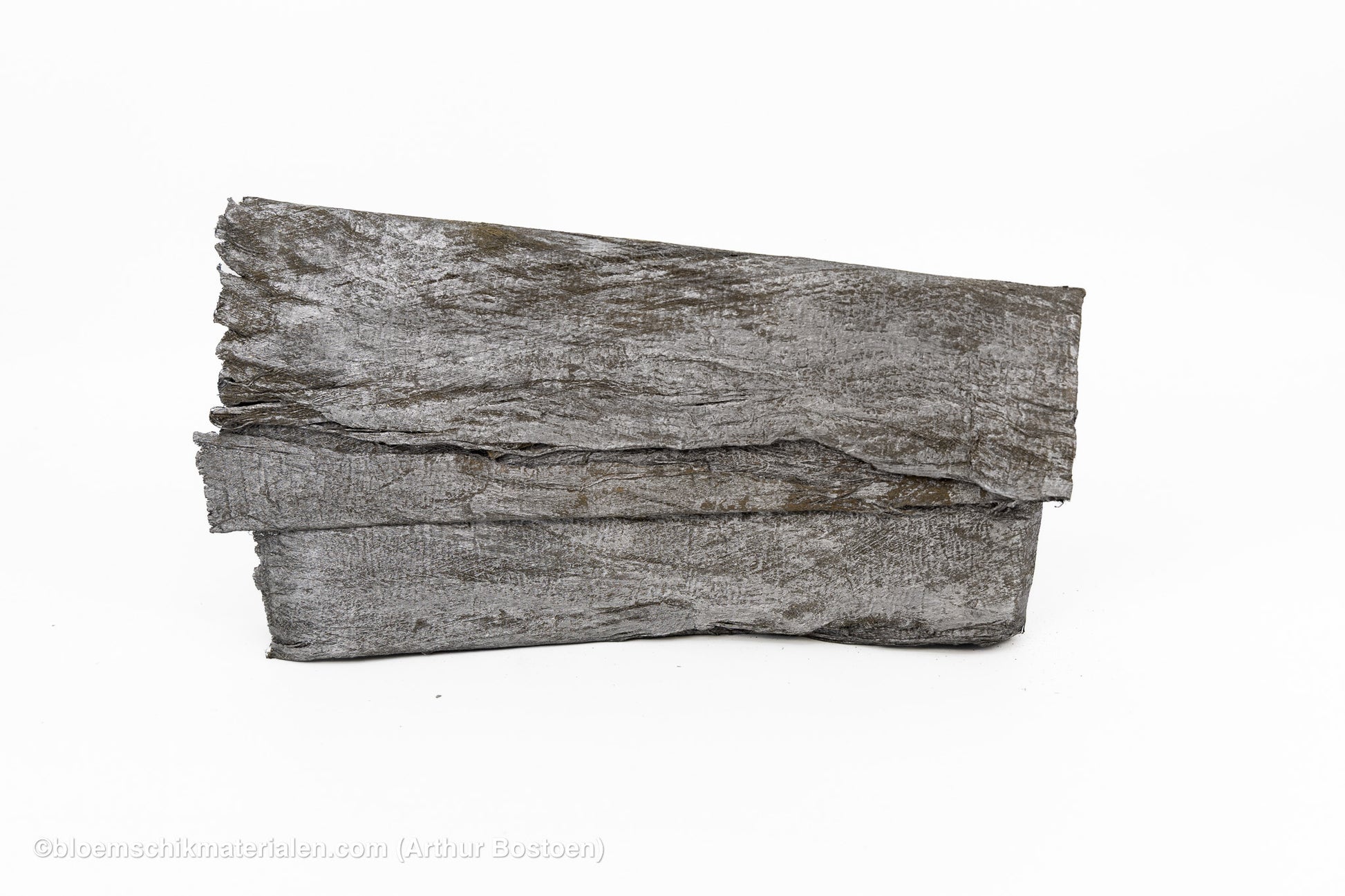 De moerbeischors lood heeft een subtiele grijsachtige tint die een moderne en industriële uitstraling biedt aan je bloemwerk en decoraties. Ideaal voor het toevoegen van een ingetogen accent in bloemstukken. Moerbeischors is een veelzijdig en rustiek materiaal dat veel gebruikt wordt voor het inpakken van recipiënten en vormen (zoals uit isomo) en andere decoraties. Het wordt vaak vastgezet met een lijmpistool of kleine kopspelden en is een van de populairste materialen bij Groene Verbeelding vanwege zijn natuurlijke uitstraling en veelzijdigheid.