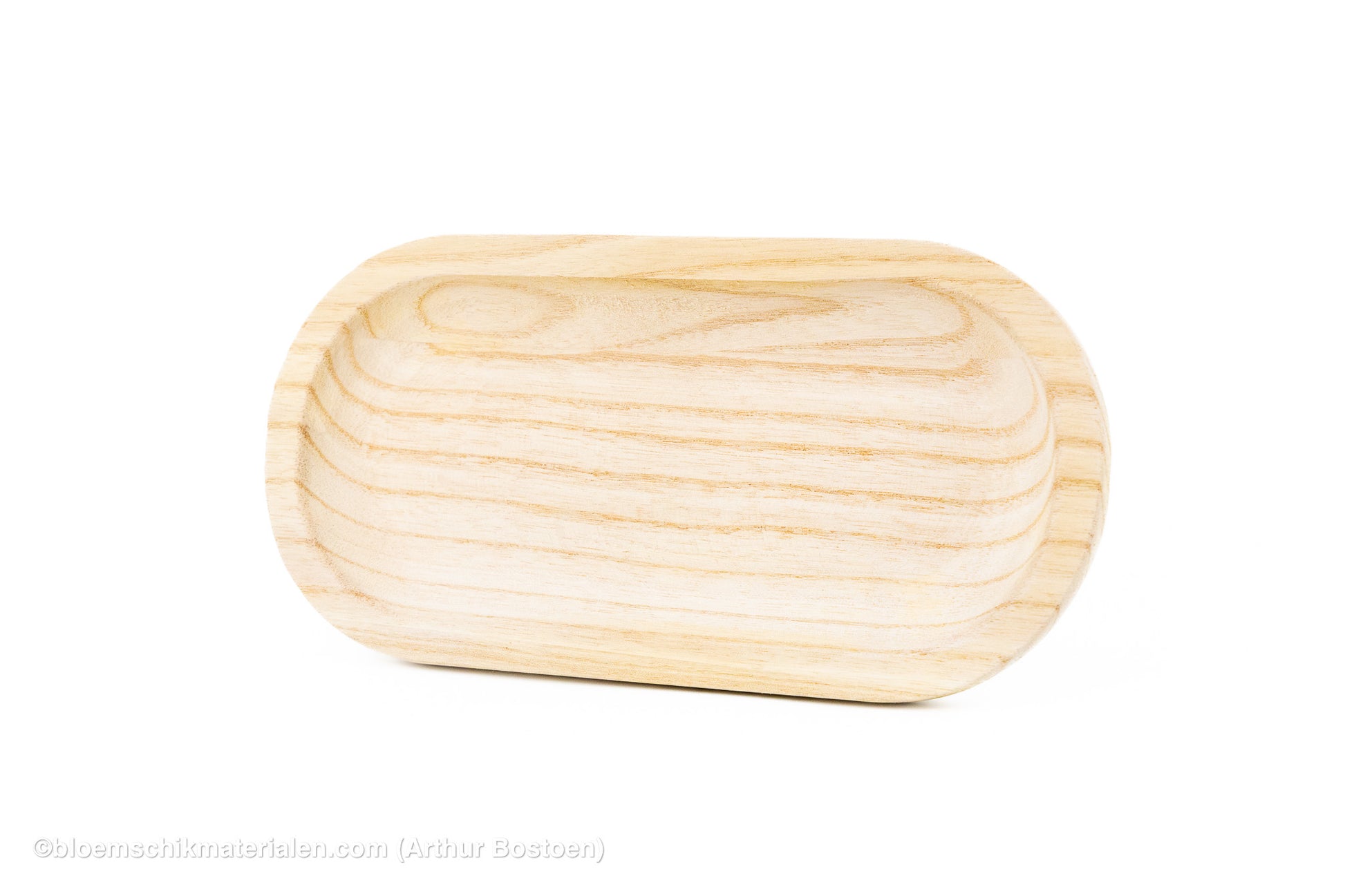 Deze compacte schaal is vervaardigd uit Paulowniahout, een lichte maar sterke houtsoort afkomstig uit Oost-Azië, bekend om zijn mooie nerfstructuur en gladde afwerking. Met zijn formaat van 30x15 cm is dit model ideaal voor kleine bloemstukken, decoraties of als basis voor een verfijnd tafelarrangement.